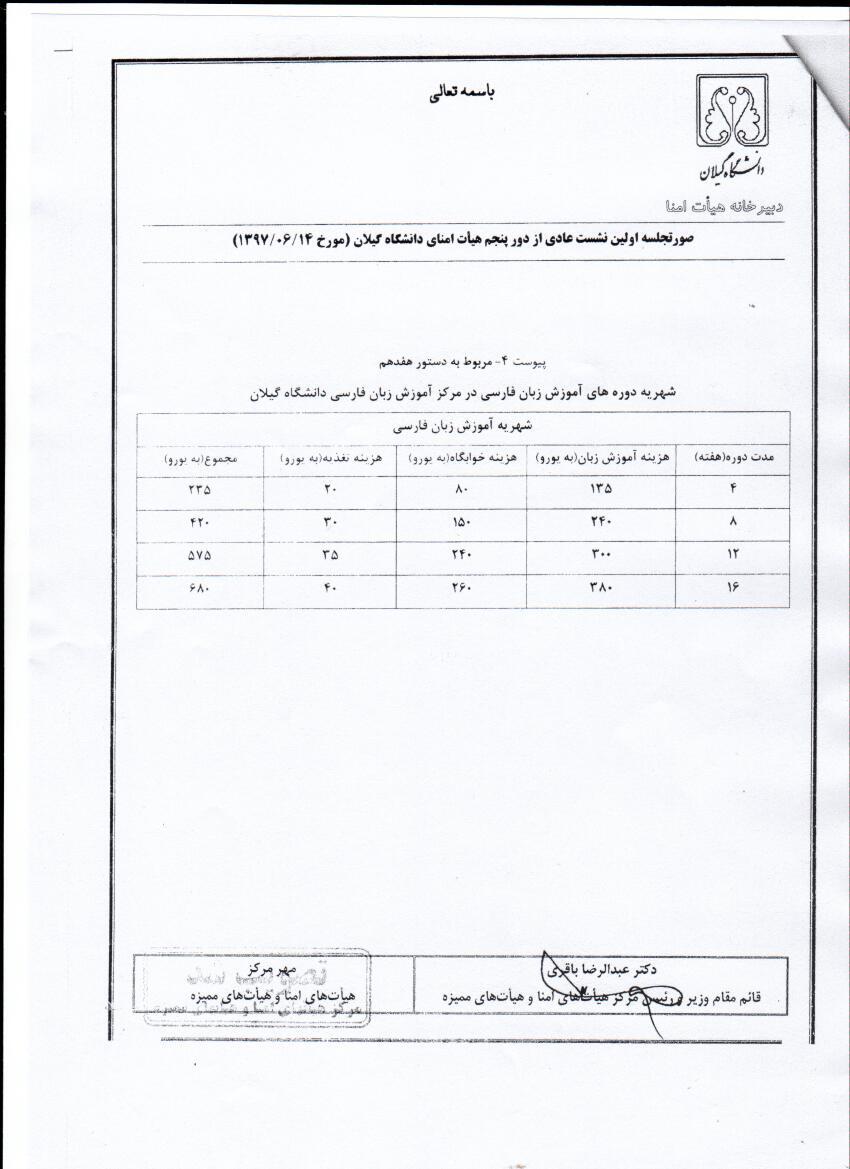 شهریه دوره آموزشی زبان فارسی
