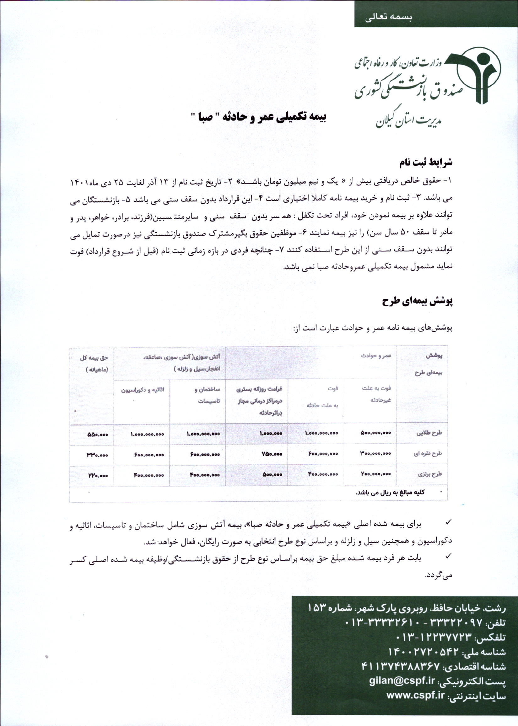 اطلاعیه سازمان بازنشستگی در خصوص قرارداد بیمه حوادث گروهی بازنشستگان