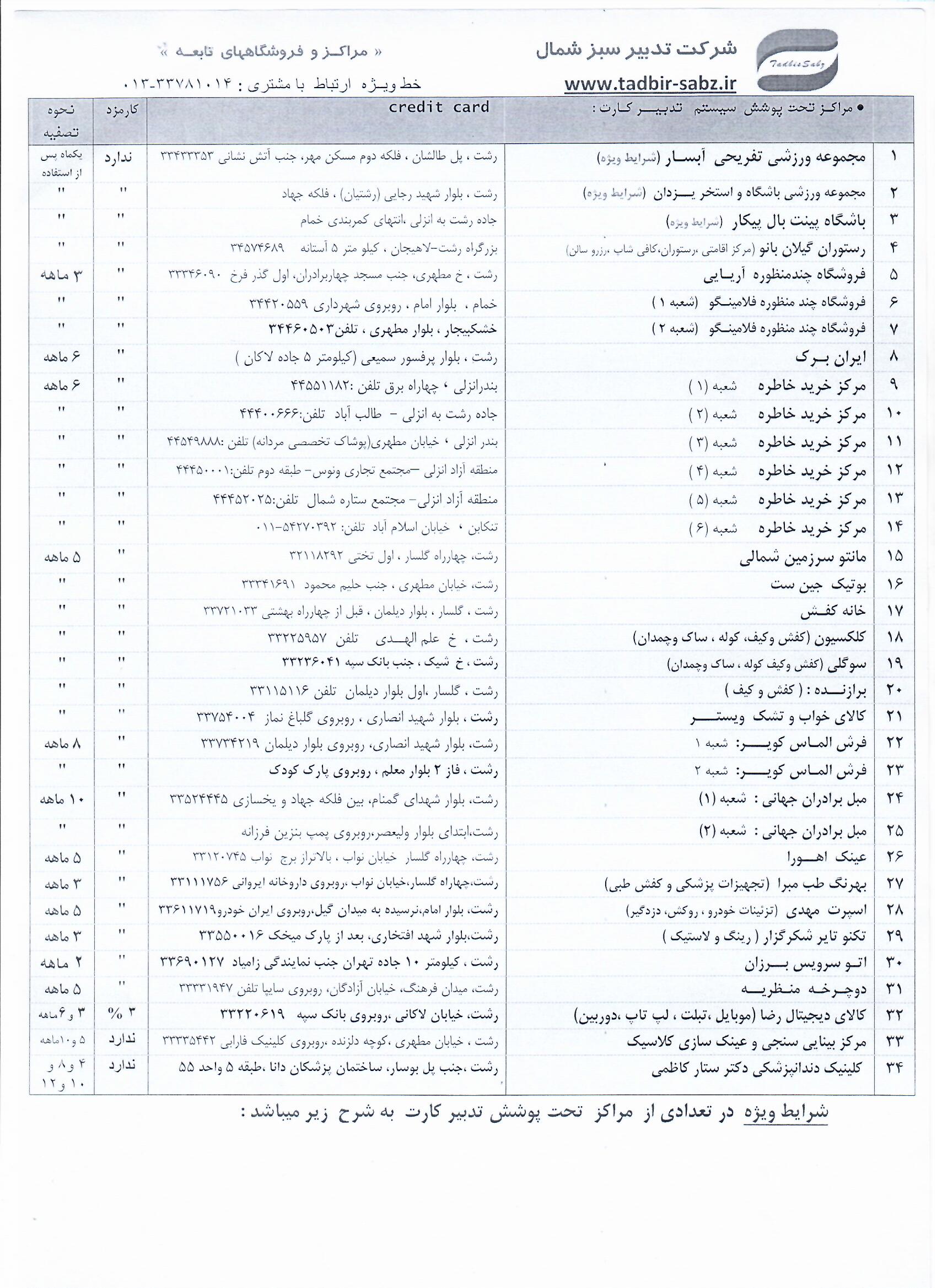 فروشگاه های جدید طرف قرارداد با شرکت تدبیر سبز
