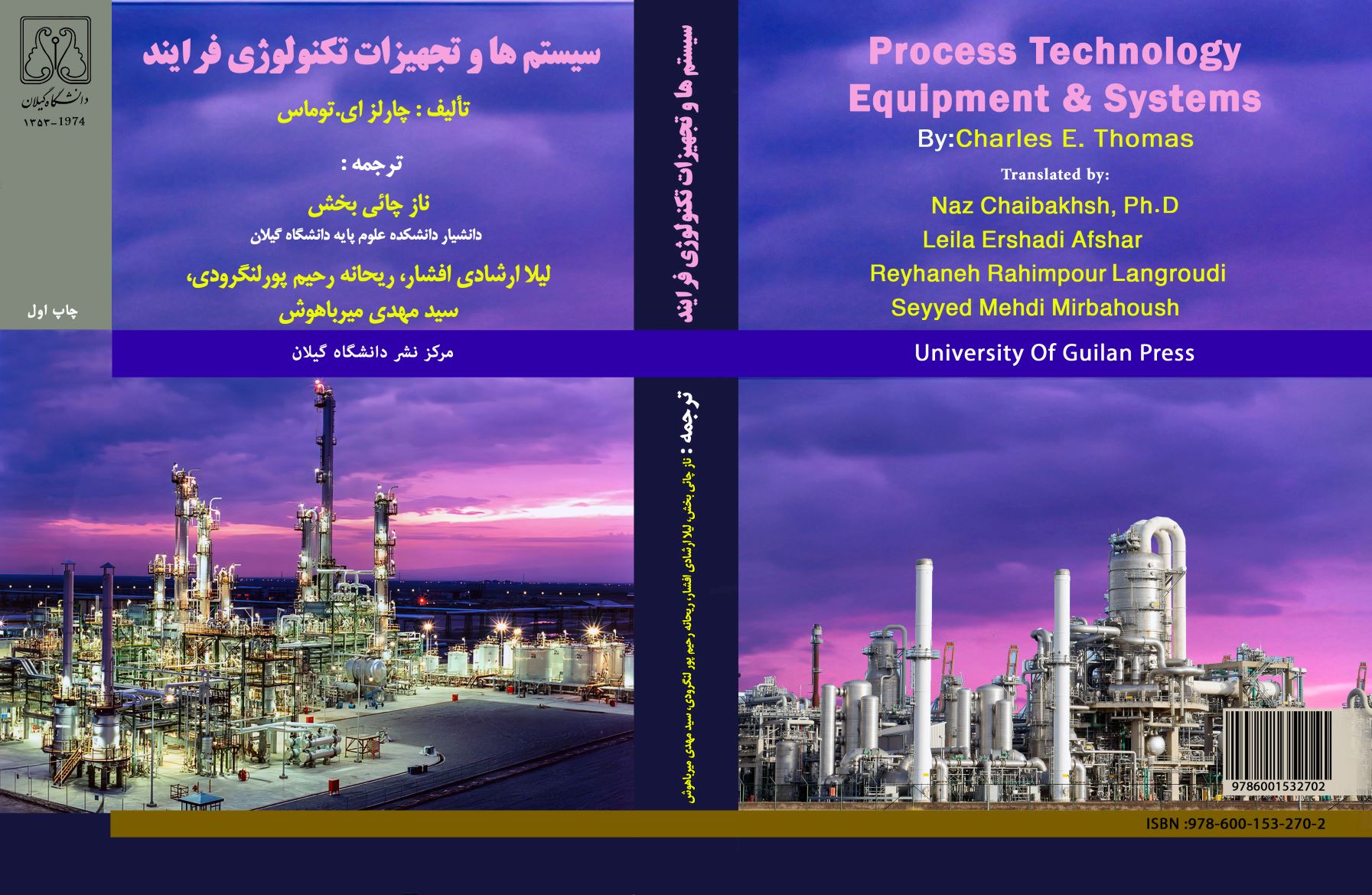 کتاب سیستم ها و تجهیزات تکنولوژی فرایند ترجمه دکتر ناز چائی بخش لنگرودی عضو هیات علمی گروه شیمی دانشگاه گیلان و لیلا ارشادی افشار، ریحانه رحیم‌پور لنگرودی و سید مهدی میرباهوش توسط اداره چاپ و نشر دانشگاه گیلان منتشر شد. این کتاب ترجمه چاپ سوم این اثر تألیف دکتر چارلز ای توماس است که نتیجه سال‌ها تحقیق وی در زمینه تکنولوژی فرایند و آموزش تکنسین‌ها و کتابی منحصربه‌فرد برای تقویت استراتژی‌های یادگیری دانشجویان است. این کتاب شامل موضوعات کاربردی مورد استفاده در صنایع بوده و در آن با استفاده از تصاویر و دیاگرام‌های مفید و اطلاعاتی کاملاً به‌روز در زمینه سیستم‌ها و تجهیزات صنعتی، به افزایش اطلاعات و دانش مخاطبین پرداخته شده است. این کتاب با توجه به مطالب مندرج در آن، مرجع بسیار خوبی برای تکنسین‌های شاغل در صنایع و افرادی است که در حال یادگیری اصول و مفاهیم تکنولوژی فرایند هستند تا به آسانی با سیستم ها و عملیات واحدهای فرایندی نظیر مبدل‌های حرارتی، برج‌های خنک‌کن، برج های تقطیر، دیگ‌های بخار، ابزار دقیق، کوره‌ها، راکتورها و ... آشنا شوند. همچنین این کتاب به‌عنوان یک کتاب درسی برای دوره کارشناسی در رشته‌های مهندسی توصیه می‌شود.