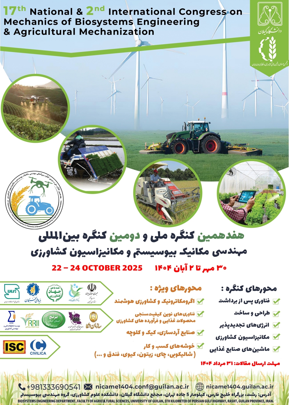 هفدهمین کنگره ملی و دومین کنگره بین‌المللی مهندسی مکانیک بیوسیستم و مکانیزاسیون کشاورزی