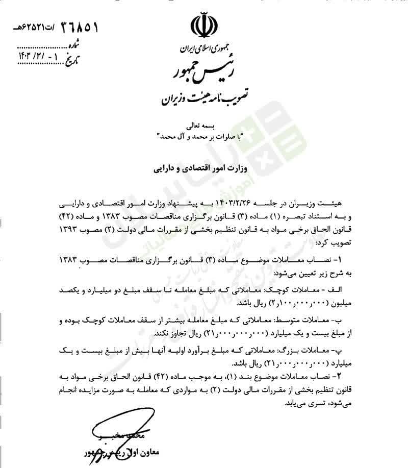 ابلاغ بخشنامه حدنصاب معاملات سال 1403