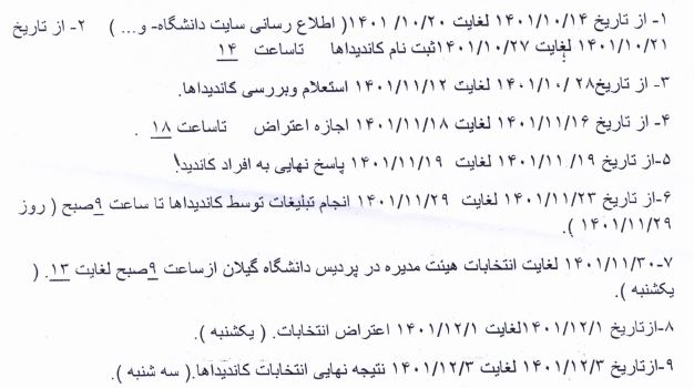 به اطلاع بازنشستگان محترم دانشگاه گیلان می رساند، انتخابات هیئت مدیره کانون صنفی بازنشستگان روز یکشنبه مورخ 1401/11/30، از ساعت 9 صبح لغایت 13، در پردیس دانشگاه گیلان بر اساس بندهای زیر برگزار می گردد.