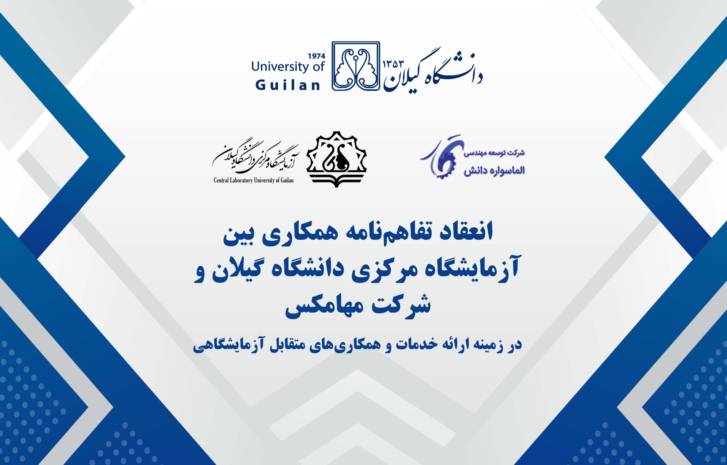 در راستای ارتقای سطح خدمات آزمایشگاهی و فراهم‌سازی امکانات ویژه برای اعضای هیئت علمی و دانشجویان دانشگاه گیلان، تفاهم‌نامه همکاری مشترک بین آزمایشگاه مرکزی دانشگاه گیلان و شرکت توسعه مهندسی الماس‌واره دانش (مهامکس) در زمینه ارائه خدمات و همکاری‌های متقابل آزمایشگاهی منعقد شد.